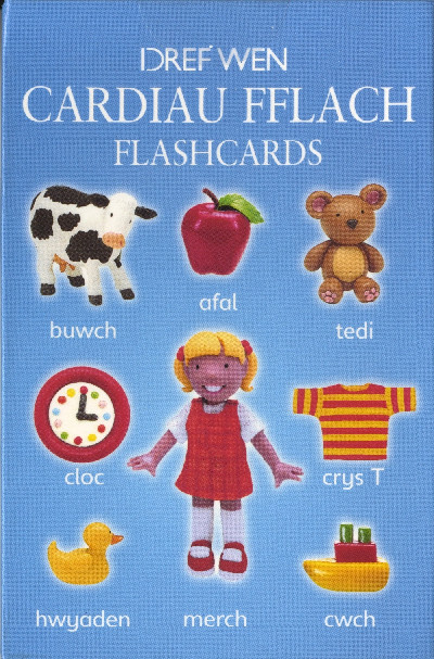 A Welsh adaptation of Usborne Flashcards, a packet of fifty double-sided flash cards showing words and pictures to help children aged 4-6 years to recognise words and learn to speak Welsh. First published February 2003.