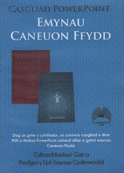A DVD comprising 900 files for a Powerpoint presentation of hymns from the volume Caneuon Ffydd, together with a short selection of additional hymns. The appropriate licence is required (CCLl/Calamus) to use the contents on screen or to reproduce the hymns in leaflet form.