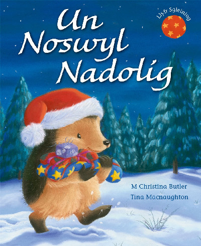 Christmas is near, but Little Hedgehog has forgotten to get presents for his friends, and his house isn’t sparkly and Christmasy at all! Hedgehog sets off into the forest to find gifts, but the night is cold and the woods are growing dark. A Welsh adaptation of One Christmas Night.