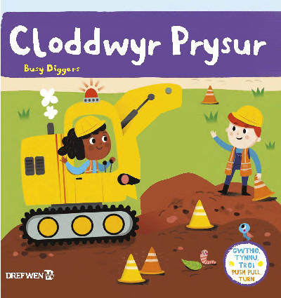 The mighty diggers have work to do. No job is too big for this hard-working crew! Push, pull, turn and slide to bring the busy diggers to life! A bilingual text in rhyme; the Welsh adaptation by Elin Meek.