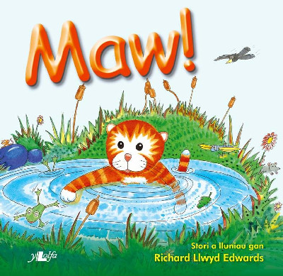 A small, colourful book about a ginger cat called Maw. She’s a lovely cat, but very noisy, always seeking attention. A book for young children, with English text at the bottom of each page so non-Welsh-speaking parents can read along too.