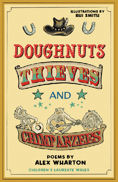 Casgliad o gerddi gwreiddiol, hwyliog, limrigau, haicw a rap wedi’u hanelu at ddisgyblion ysgol gan Fardd Plant Cymru trwy gyfrwng y Saesneg. Darluniwyd gan Rhiannon Smith.An innovative poetry ‘how to’ collection aimed at school pupils, Doughnuts, Thieves and Chimpanzees is packed full of fun-poems, limericks, haiku, song and rap from Wales Children’s Laureate Alex Wharton, illustrated by Rhiannon Smith.