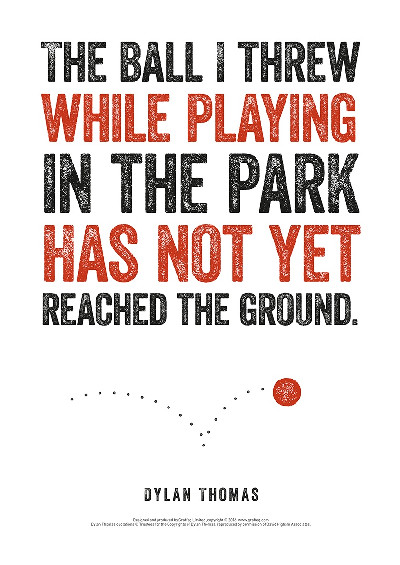 ‘The ball I threw while playing in the park has not yet reached the ground.’ This limited-edition Dylan Thomas print poster features a quote from his poem ‘Should Lanterns Shine’. Published as part of the official Dylan Day celebrations.