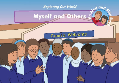 Today is Aled and Siân’s first day at school. They learn about the school family. Aled and Siân’s new friends share stories about their other families. They are excited to hear about the big families of Christians, Hindus, Jews and Muslims.