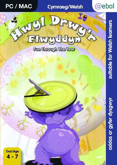 Mae’r ddisg gynhwysfawr hon yn addas ar gyfer siaradwyr Cymraeg naturiol a dysgwyr Cymraeg ac mae’n cynnwys gweithgareddau a fydd yn sbarduno plant i ddatblygu eu sgiliau llafaredd, darllen ac ysgrifennu. Gyda gweithgaredd wedi ei lefelu ar gyfer pob mis mi fydd y plant yn dysgu geirfa drwy gyfrwng themâu megis – rhifau, lliwiau, anifeiliaid, bwydydd, amser, tywydd, trafnidiaeth, a.y.b.Suitable for both Welsh learners and native speakers, this disc contains activities which will help children develop oral, reading and writing skills in Welsh. With graded activities for each month of the year children will learn vocabulary such as numbers, colours, animals, foods, time, weather, vehicles, toys and seasonal words.