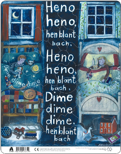 Jig-so gwreiddiol a ddyluniwyd gan yr arlunydd Lizzie Spikes o Geredigion sy’n dod â’r rhigwm hyfryd ‘Heno, heno, hen blant bach’ yn fyw. Dyma anrheg hyfryd i blant bach dros 3 oed sy’n rhan o gyfres o jig-so’s wedi’i dylunio gan Lizzie Spikes. 50 o ddarnau, rhai ohonynt mewn siapiau diddorol.