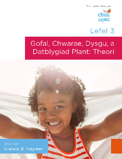 Mae’r llyfr hwn wedi’i ysgrifennu’n arbennig ar gyfer cwrs Lefel 3 Gofal, Chwarae, Dysgu, a Datblygiad Plant. Mae’r gwerslyfr hwn yn addas i ddysgwyr o bob gallu, ac mae’n rhoi sylw i’r wybodaeth a’r sgiliau y bydd eu hangen ar ddysgwyr wrth iddynt ddilyn y cwrs.A book written especially for students of the Level 3 Child Care, Play and Development course through the medium of Welsh. It is suitable for learners of all abilities, and pays due attention to the information and skills required by students.