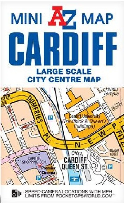 Map mini eglur A-Z, dwyochrog mewn lliw llawn o ganol dinas Caerdydd. Mae’r map yn agor yn ddalen maint A3, a gellir ei blygu’n hwylus mewn dull consertina i’w glawr maint 105mm x 65mm. Graddfa’r map yw 10.33 modfedd i’r filltir (16.32 cm i’r cilomedr).This A-Z map of Cardiff City Centre is a full colour, double-sided, foldout mini map. Opening out to a single A3 sheet, this easy to use folding design concertina’s back into a compact 105mm x 65mm sized cover. Side one features a large scale coloured street map of central Cardiff, shown at a clear 10.33 inches to 1 mile (16.32 cm to 1 km).