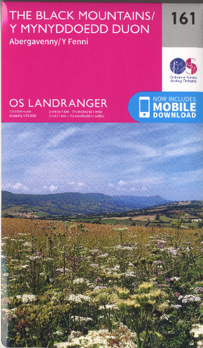 Ordnance Survey Landranger map covering the Black Mountains region and Abergavenny, Crickhowell, and Hay-on-Wye. 1:50,000 scale. 2cm to 1km – 1.25 inches to 1 mile. Now includes mobile download.