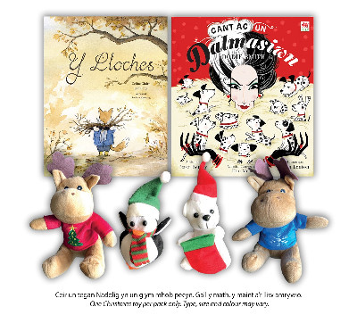 Fabulous bargain Christmas pack of 2 paperback books and a gorgeous plush Christmas toy. The pack contains Cant ac Un Dalmasiwn, Y Lloches and a Xmas toy (there are a variety of designs and one toy is included in each pack).