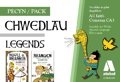 Pecyn o ddwy gyfrol ddwyieithog yn cyflwyno dwy stori o’r Mabinogi gan Aidan Saunders: Pwyll a Rhiannon a Branwen.A pack of two bilingual books presenting two stories from the Mabinogi by Aidan Saunders: Pwyll a Rhiannon and