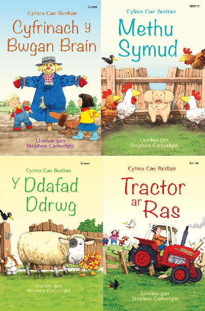 Welsh adaption of the Farmyard Tales series. A series of four books from young children about Cae Berllan farm. These lively stories tell the adventures of the farm animals accompanied by colourful illustrations.