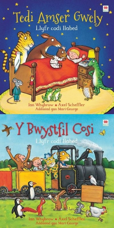 A bargain pack of two raise the flap charming books by Ian Whybrow: Y Bwystfil Cosi and Tedi Amser Gwely.