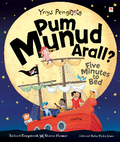 Addasiad gan Tudur Dylan Jones o Five Minutes to Bed. Llyfr stori-a-llun sy’n odli hyfryd am griw o fôr-ladron bach sydd byth, bron, yn barod i fynd i gysgu.Captain Cutlass is calling for his pirates to go to bed but they are all wide awake and desperate to stay up! This beautiful picture book has fun rhyming text and humorous illustrations that will delight all pirate fans. The perfect bedtime book for your very own noisy pirates. Ahar me hearties! Suitable for young children, early years.