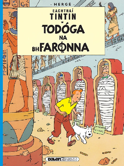 An encounter with eccentric Egyptologist, Seán Ó Tuama, takes Tintin and his faithful dog, Báinín, in search of the tomb of Pharaoh Kí-Oskh. But the king’s resting place contains a dark secret … a strange clue leads Tintin and Báinín into the hands of drug smugglers, as they find themselves in vicious conflict with a major international criminal.