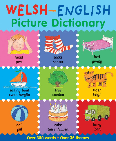 Here are over 350 illustrations of familiar objects. Every picture is labelled with the English word, followed by its Welsh equivalent. The translated word is followed in turn by a phonetic spelling in smaller type. Words are grouped according to themes, such as sports, classroom, fruit, vegetables, party time, weather, and many others. Also available as an App on iTunes.